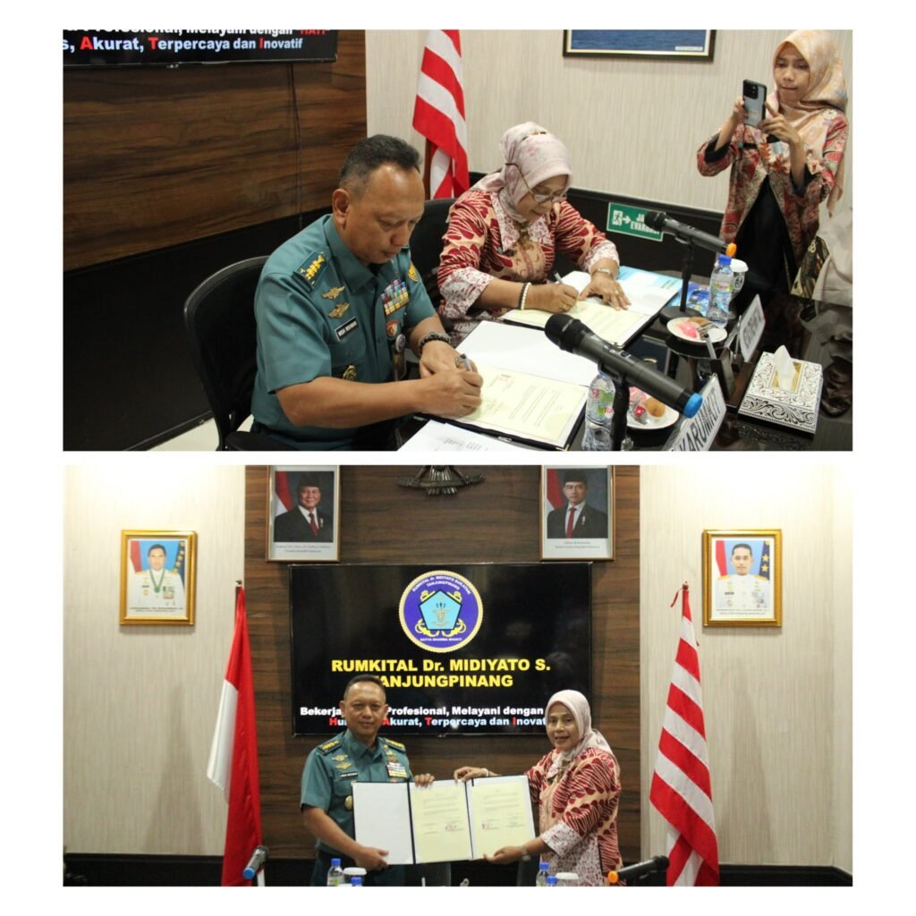 Tanjungpinang — Dalam upaya memperkuat sinergi dan meningkatkan kualitas pendidikan tenaga kesehatan, STIKES Hang Tuah Tanjungpinang menjalin kerja sama dengan Rumah Sakit TNI Angkatan Laut (Rumkital) Dr. Midiyato Suratani. Penandatanganan Memorandum of Agreement (MoA) dilaksanakan pada Selasa (21/10/2025) di Ruang Rapat Karumkital Dr. Midiyato Suratani, Tanjungpinang, Kepulauan Riau.